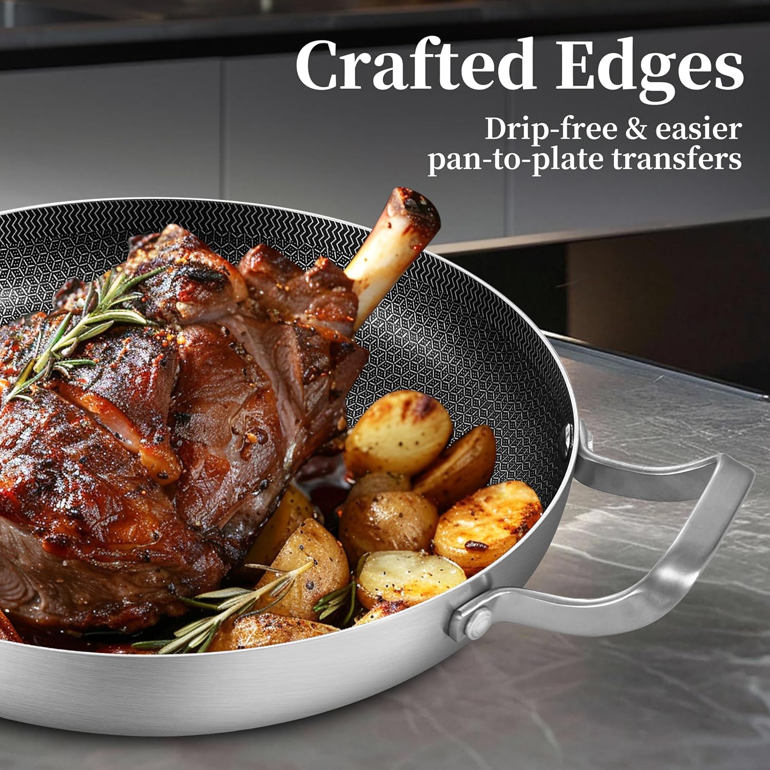 - 【Induction-Ready & Compatible with All Cooktops】 -Magnetic stainless steel base ensures strong, even heating on induction, gas, electric, and glass stoves. From high-heat searing to gentle simmering, this pan gives precise temperature control for all recipes while remaining safe and durable over time.