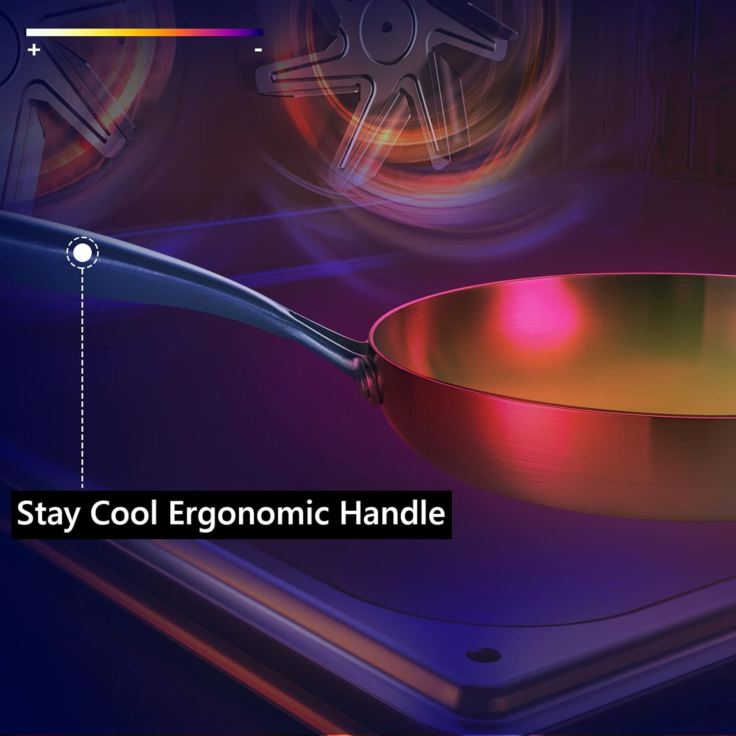 - ✅【Suitable for All Stove】Works on all cook stove tops, include induction, gas, electric, halogen, glass, and ceramic. The high quality stainless steels and the aluminum core make it dishwasher-safe and oven-safe up to 500°F. We always recommend to follow the included instruction for seasoning and maintaining the pan properly.