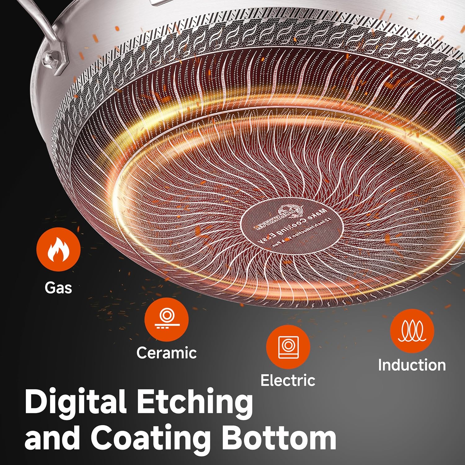 LOLYKITCH New Hybird 12 Inch Tri-Ply Stainless Steel Wok Pan with Lid,Ceramic Nonstick Stir Fry Pans,Induction Cooking Pan,Dishwasher and Oven Safe